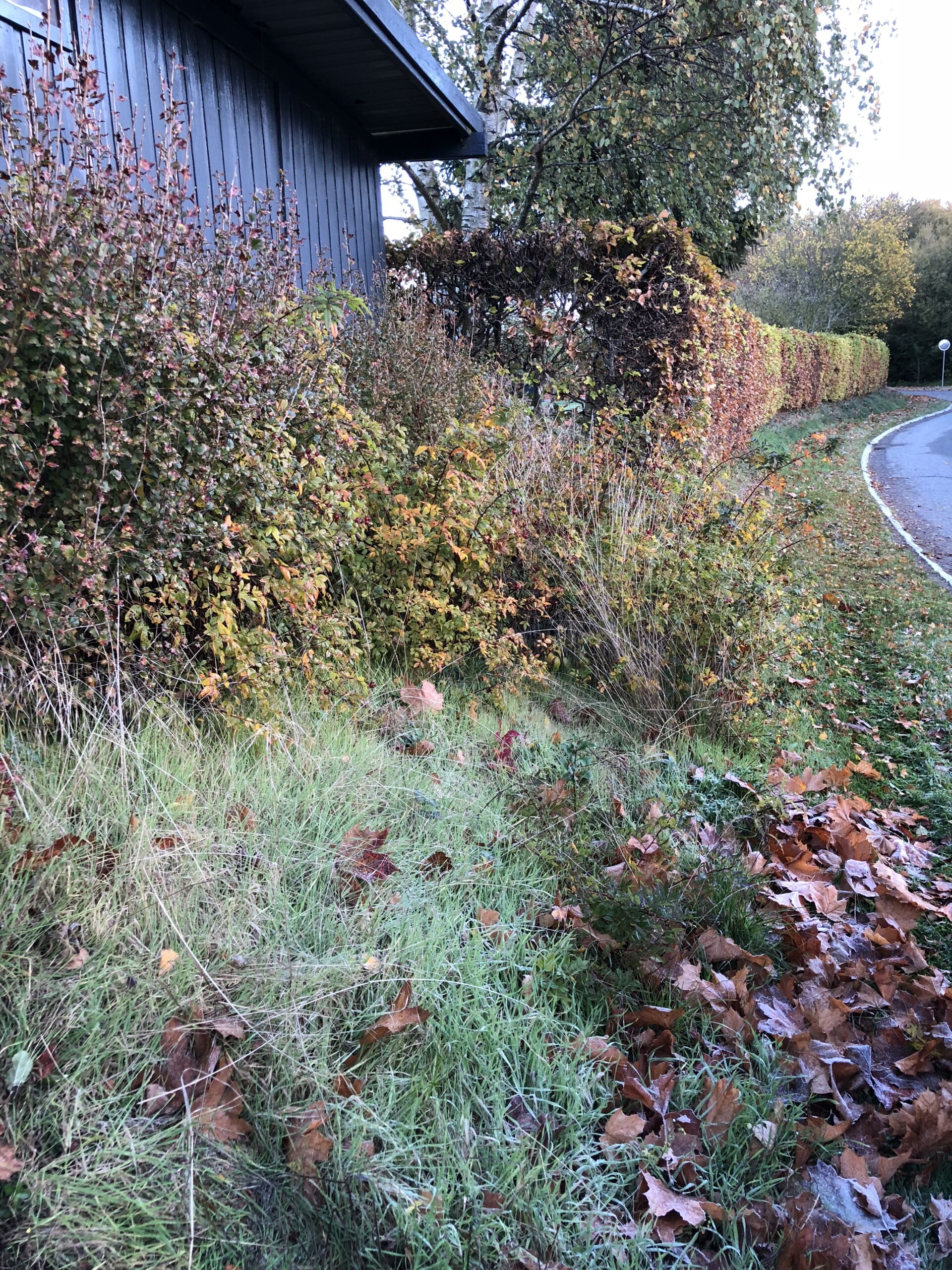 Vi har ryddet et tilgroet bed og etableret ny beplantning på en skråning langs vej og bygning, så arealet fremstår pænt, robust og nemt at vedligeholde. Billederne viser før/efter med fjernelse af ukrudt, nedklipning og oprensning, efterfulgt af klargøring af jorden med afretning og jordforbedring. Herefter er der plantet bunddækkeplanter i rækker for hurtig lukning af overfladen og mindre ukrudtstryk fremover. Der er lagt vægt på en løsning, der fungerer i hverdagen – også hvor der er kant mod græs, hæk og belægning. Arbejdet passer godt til boligforeninger, institutioner og private, der ønsker en pæn rabat/bundbed-løsning med holdbar beplantning og et mere velplejet udtryk i Østjylland.