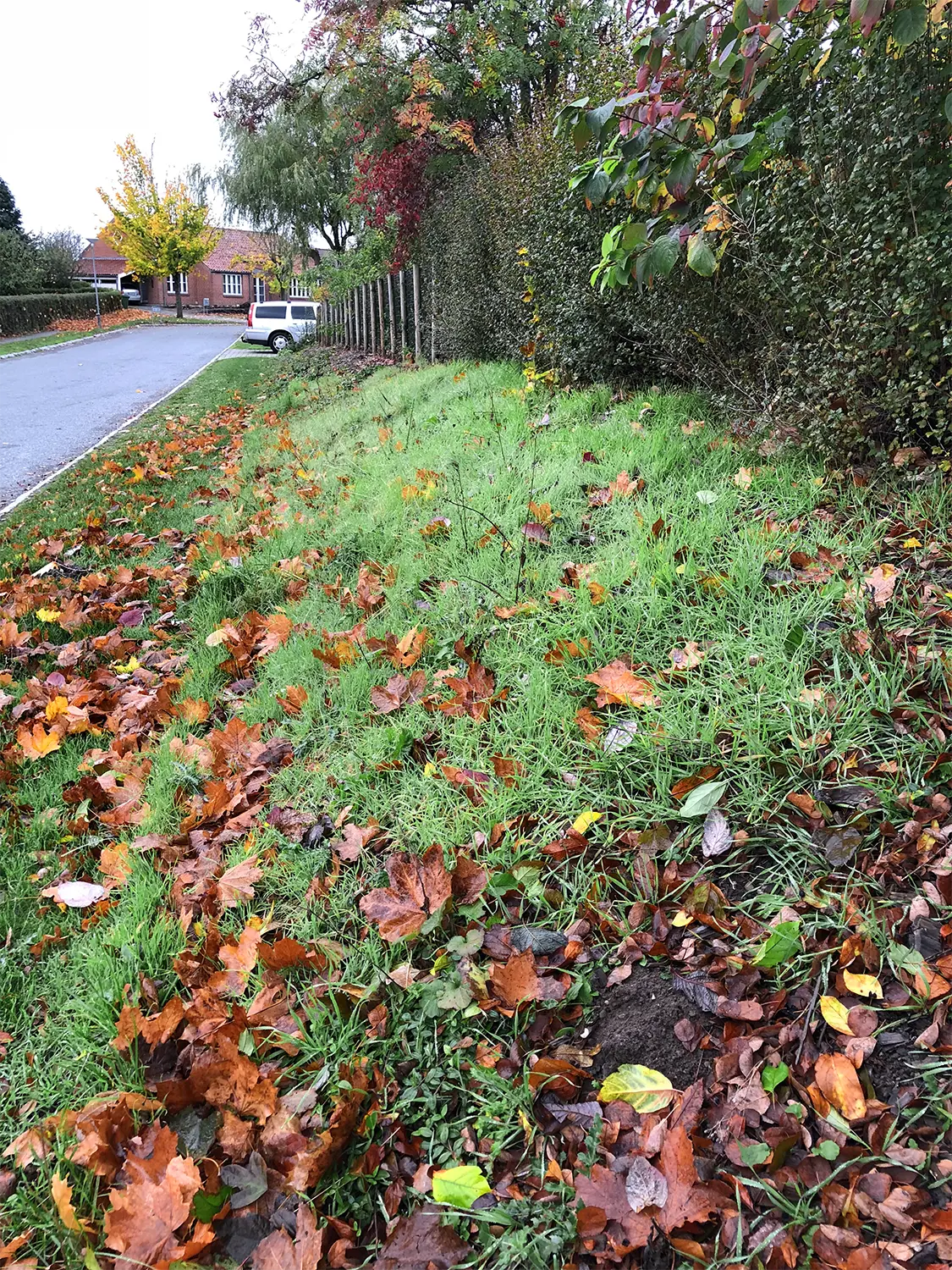Etablering af nyt, ensartet bunddække. Vi har fjernet det grove græs og blade for at skabe et rent og vedligeholdelsesvenligt udtryk.